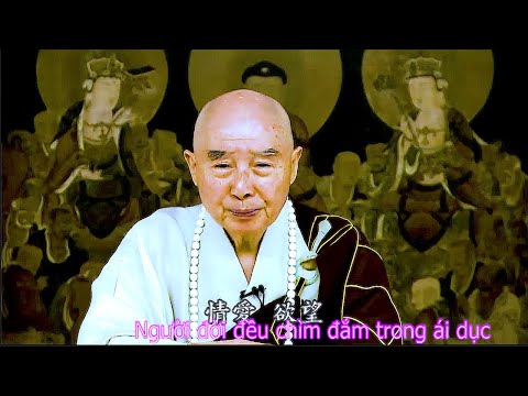 Chú giải của Niệm Lão, đoạn bên phải khuyên dụ người đời, xả ác tu thiện, đây là tông chỉ được nói trong hai hàng kinh văn này. “Ái dục”, chỉ cho tình ái và tham dục, hiện nay gọi là tình chấp, cái này rất khó dứt. “Ái bất trọng bất đoạ Ta bà”, đây là điều mà Cổ đức nói, “niệm bất nhất bất sanh tịnh độ”. Người đời đa phần đều chìm đắm trong ái dục, câu nói này hiện nay, có thể nói là sự miêu tả toàn xã hội trên thế giới, đây không phải là một vùng, mà toàn thế giới đang đắm chìm trong ái dục. Tình ái, dục vọng, trong cái tình này đúng là có thương yêu không? Là giả không phải là thật. Phật pháp nói vĩnh hằng bất biến mới là thật, có mới nới cũ là giả. Hiện nay trong cái xã hội này, thật có tình yêu chăng? Nếu đúng là có tình yêu thì còn thể lượng thứ, nhưng đều là hư tình giả ý, mọi người lừa gạt lẫn nhau, một chút chân thành cũng không có, xã hội ngày nay không giống như nhân gian, có người nói là địa ngục trần gian, câu nói này chúng ta càng nghĩ càng thấy có lý. Địa ngục nằm ở đâu? Hiện nay nhân gian là địa ngục, quan niệm đạo đức cơ bản của nhân luận đều mất hết rồi, hoàn toàn mất hết. Chúng ta nói ngũ thường, đúng là ngày nay bất nhân, bất nghĩa, vô lễ, vô trí, vô tín. Trung Quốc trước đây ngũ thường trong xã hội là điều cơ bản, bất cứ ai cũng đều phải có, không có quý vị làm sao đứng vững trong xã hội? Không thể không coi trong 5 chữ này. Nhân là nghĩ đến mình đến người, nghĩ đến mình phải nghĩ đến người khác, bắt đầu từ đâu? Trước hết nghĩ đến cha mẹ, sau đó nghĩ đến vợ con cái, sau đó nghĩ đến huynh đệ tỷ muội, mở rộng theo từng tầng từng tầng. Phải dốc hết bổn phận của mình, phải yêu quý những người này, phải quan tâm những người này, phải chăm sóc những người này, phải giúp đỡ những người này. Bây giờ không còn gì nữa, người bây giờ chỉ nghĩ đến bản thân, ngoài bản thân ra không để tâm đến ai. Để trong tâm những gì? Dục vọng, tình dục. Giữa vợ chồng yêu đương kết hôn, quý vị nếu hỏi hai người kết hôn này, giữa hai người liệu có thật sự tin tưởng lẫn nhau không? Họ sẽ lắc đầu: đến đâu hay đó thôi! Cái thái độ này là thật không phải là giả, thờ ơ, không thể trường tồn. Mấy ngày chia tay cũng có, mấy tháng chia tay cũng có, một hai năm chia tay cũng rất nhiều rất nhiều, đều là tạo nghiệp. Thế gây oán cho ai? Nếu như họ đã có con rồi, thì gây oán cho đứa trẻ này, quý vị bất hòa, chúng phải chịu tội, nỗi oán hận của chúng kiếp này đời này rửa không sạch, kiếp sau đời sau vô tình hay hữu ý gặp được không báo thù hay sao?